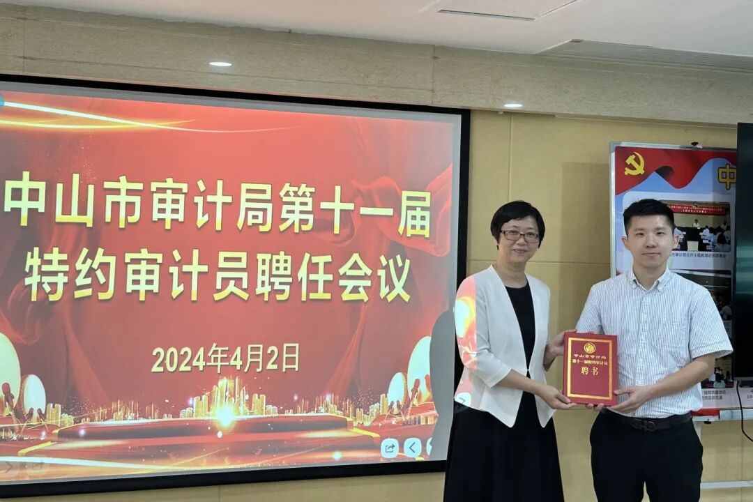 4月2日上午,中山市審計局召開第十一屆特約審計員聘任會議,致公黨中山市委會第七支部副主委葉俊文獲聘“中山市特約審計員”。